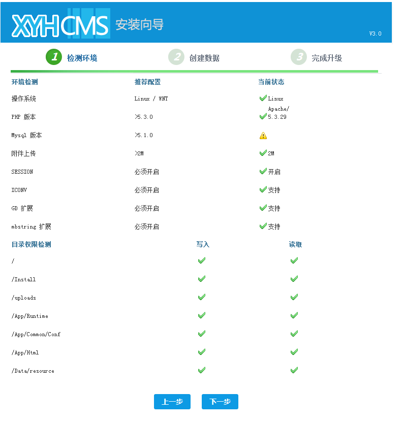 打算在服務器上安裝行云海3.0,一切準備就緒的時候,安裝遇到了問題,檢測mysql沒有在5.1.0以上,安裝的時候在創建數據庫那一步跳不到下一步,安裝不了!這可如何是好啊!截圖為證!